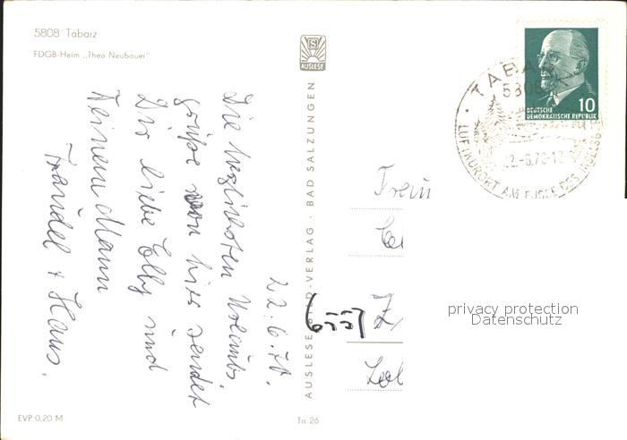 72353998 alte Postkarte Tabarz FDGB Heim Theo Neubauer postalisch gelaufen Erhaltung siehe scans KatCode: 11110016067064