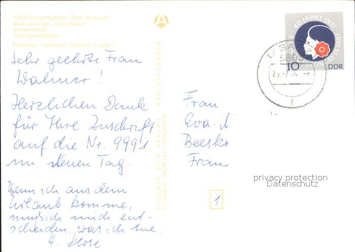 72142119 alte Postkarte Tabarz FDGB Heim Theo Neubauer Cafe Deysingslust Schwimmbad Thueringerwaldbahn postalisch gelaufen KatCode: 11110016067064