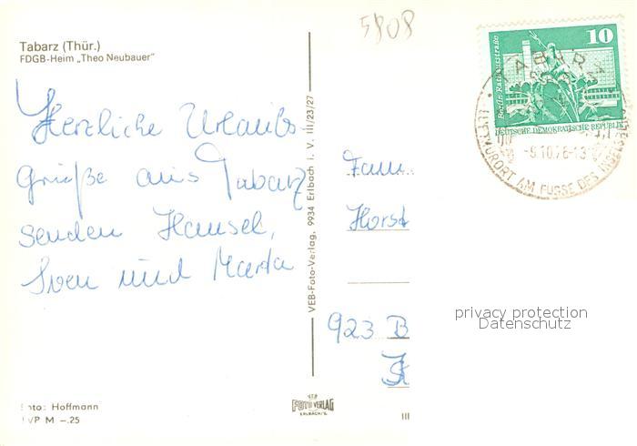 73737698 alte Postkarte Tabarz FDGB-Heim Theo Neubauer postalisch gelaufen Erhaltung siehe scans [LiesaD40] KatCode: 11110016067064