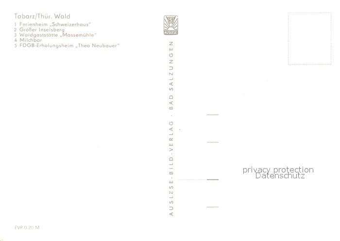 73040840 Tabarz Ferienheim Schweizerhaus Grosser Inselsberg Waldgaststaette Massemuehle Milchbar FDGB Erholungsheim Theo Neubauer postalisch nicht gelaufen Erhaltung siehe scans [FriedD77] KatCode: 11110016067064