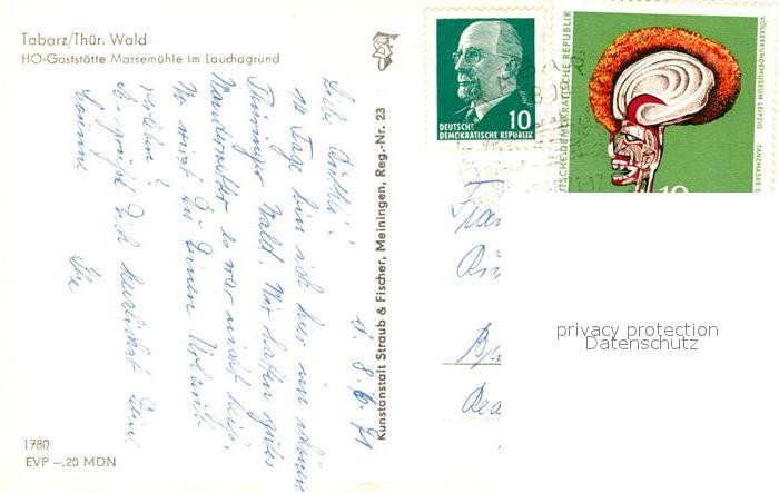 73296574 alte Postkarte Tabarz HO Gaststaette Massemuehle im Lauchagrund postalisch gelaufen Erhaltung siehe scans [FriedD77] KatCode: 11110016067064