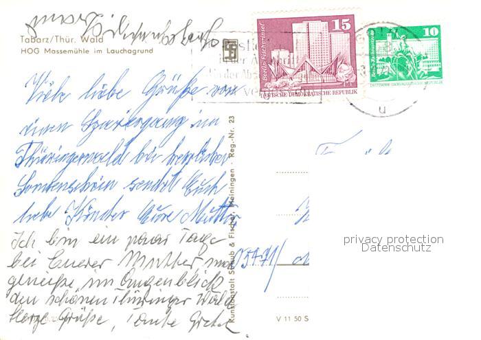 72927042 alte Postkarte Tabarz HOG Massemuehle im Lauchagrund postalisch gelaufen Erhaltung siehe scans [WerneD78] KatCode: 11110016067064