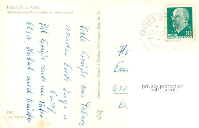 73107075 alte Postkarte Tabarz HOG Massemuehle im Tauchagrund postalisch gelaufen Erhaltung siehe scans [WerneD78] KatCode: 11110016067064