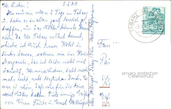 72427699 alte Postkarte Tabarz Hotel Flossmann postalisch gelaufen Erhaltung siehe scans KatCode: 11110016067064