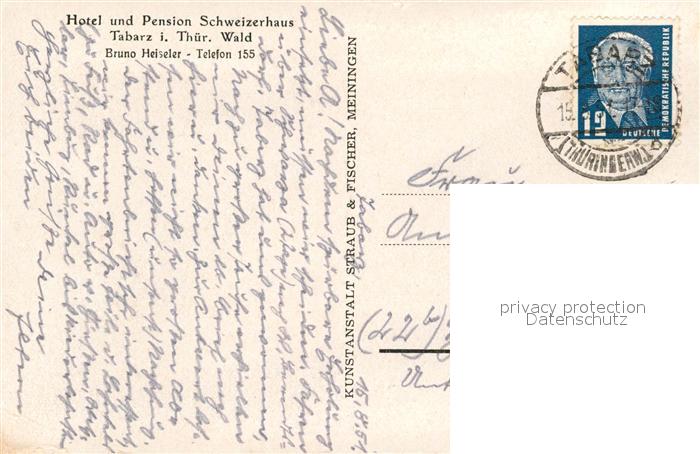 73195122 alte Postkarte Tabarz Hotel Pension Schweizerhaus postalisch gelaufen Erhaltung siehe scans [WerneD78] KatCode: 11110016067064