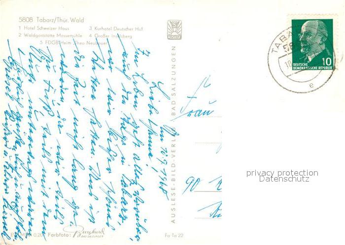 72972745 alte Postkarte Tabarz Hotel Schweizer Haus Waldgaststaette Massemuehle Kurhotel Grosser Inselsberg FDGB Heim postalisch gelaufen Erhaltung siehe scans [FriedD77] KatCode: 11110016067064