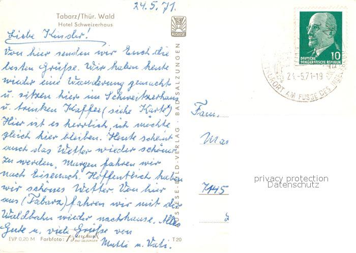 73032167 alte Postkarte Tabarz Hotel Schweizerhaus postalisch gelaufen Erhaltung siehe scans [PaolaD17] KatCode: 11110016067064