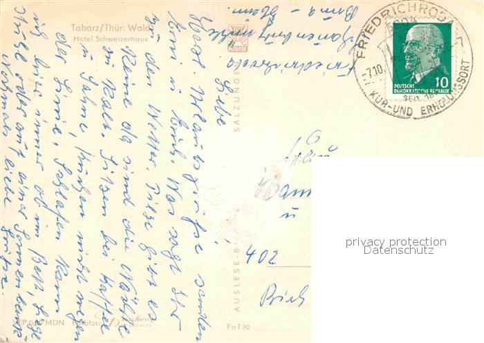 72720816 alte Postkarte Tabarz Hotel Schweizerhaus postalisch gelaufen Erhaltung siehe scans [LiesaD40] KatCode: 11110016067064