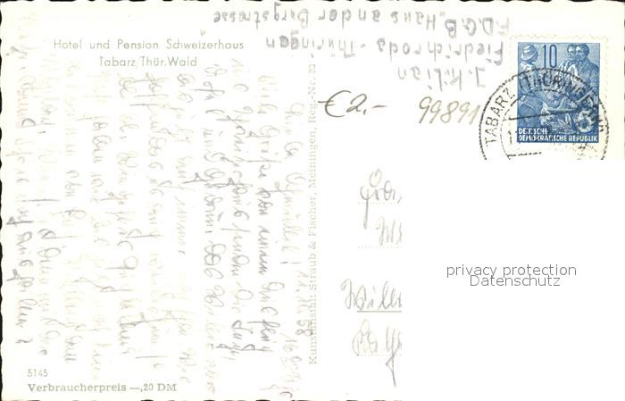 72466259 alte Postkarte Tabarz Hotel Schweizerhaus postalisch gelaufen Erhaltung siehe scans KatCode: 11110016067064