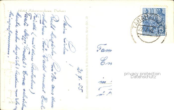 72402594 alte Postkarte Tabarz Hotel Schweizerhaus postalisch gelaufen Erhaltung siehe scans KatCode: 11110016067064
