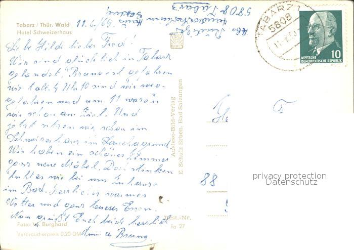 72078286 alte Postkarte Tabarz Hotel Schweizerhaus postalisch gelaufen Erhaltung siehe scans KatCode: 11110016067064