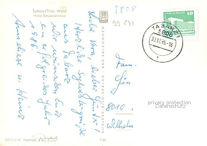 73162567 alte Postkarte Tabarz Hotel Schweizerhaus postalisch gelaufen Erhaltung siehe scans [FriedD77] KatCode: 11110016067064