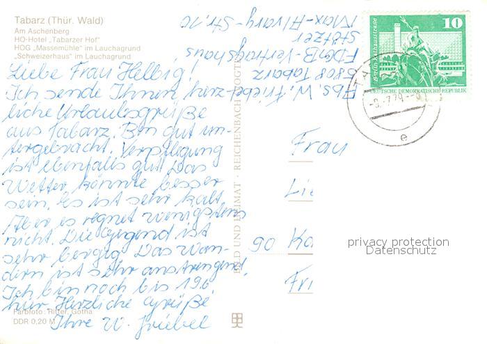 73123274 alte Postkarte Tabarz Hotel Tabarzer Hof am Aschenberg postalisch gelaufen Erhaltung siehe scans [LiesaD40] KatCode: 11110016067064