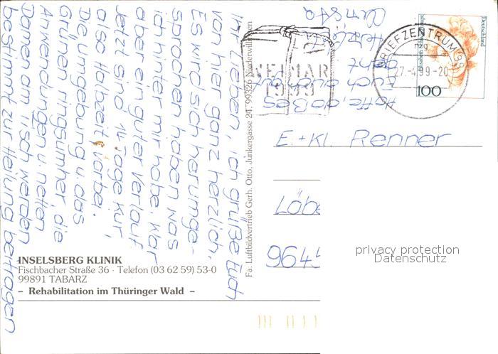 72263055 alte Postkarte Tabarz Inselsberg Klinik Fliegeraufnahme postalisch gelaufen Erhaltung siehe scans KatCode: 11110016067064