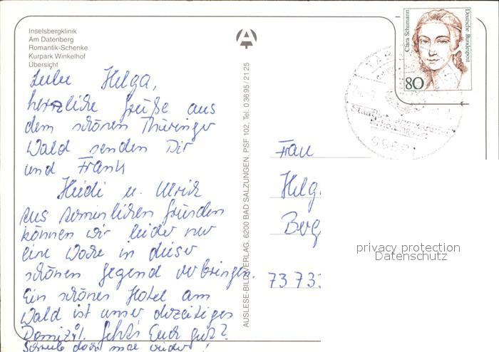 72354000 alte Postkarte Tabarz Inselsbergklinik Datenberg Romantik Schenke Kurpark Winkelhof uebersicht postalisch gelaufen Erhaltung siehe scans KatCode: 11110016067064