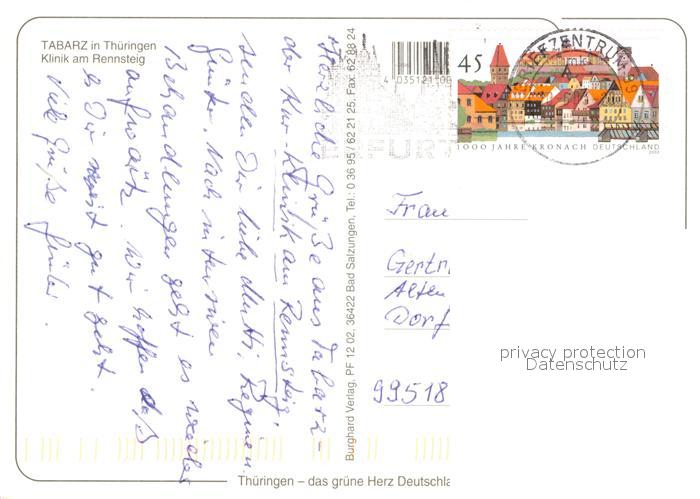 72972511 alte Postkarte Tabarz Klinik am Rennsteig postalisch gelaufen Erhaltung siehe scans [PaolaD17] KatCode: 11110016067064