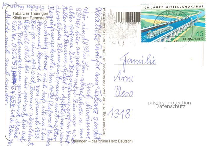 73321773 alte Postkarte Tabarz Klinik am Rennsteig Fliegeraufnahme postalisch gelaufen Erhaltung siehe scans [WerneD78] KatCode: 11110016067064
