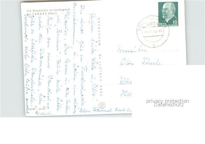 alte Postkarte Tabarz Massamuehle im Lauchagrund postalisch gelaufen Erhaltung siehe scans