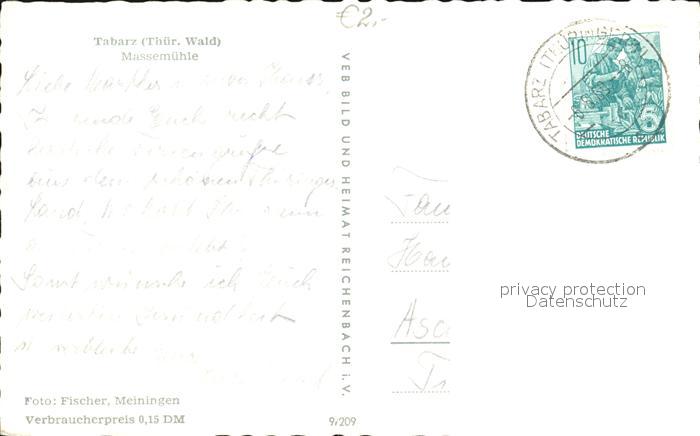 72466257 alte Postkarte Tabarz Massemuehle postalisch gelaufen Erhaltung siehe scans KatCode: 11110016067064