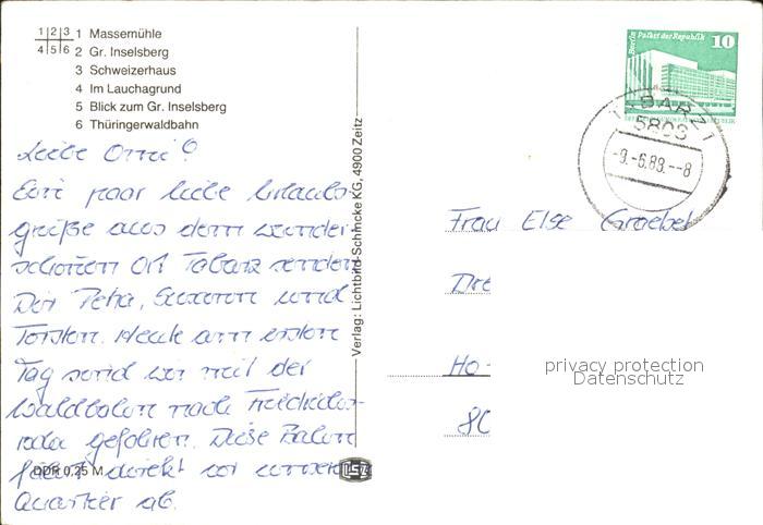 72438665 alte Postkarte Tabarz Massemuehle Inselsberg Schweizerhaus Lauchagrund Thueringerwaldbahn postalisch gelaufen Erhaltung siehe scans KatCode: 11110016067064