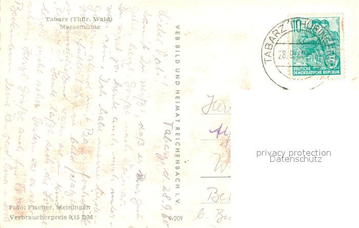 73045460 alte Postkarte Tabarz Massemuehle postalisch gelaufen Erhaltung siehe scans [PaolaD17] KatCode: 11110016067064