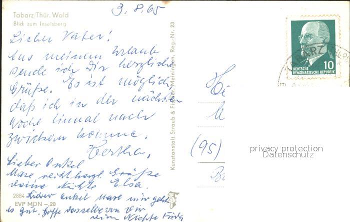 72332170 alte Postkarte Tabarz Panorama Blick zum Inselsberg postalisch gelaufen Erhaltung siehe scans KatCode: 11110016067064