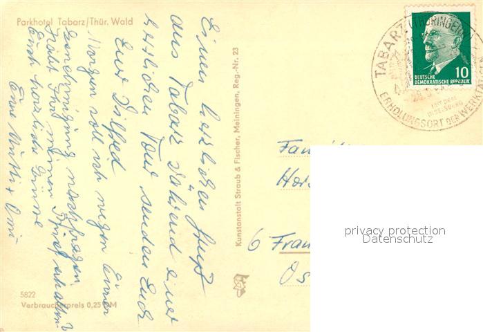 73207987 alte Postkarte Tabarz Parkhotel postalisch gelaufen Erhaltung siehe scans [KathaD81] KatCode: 11110016067064