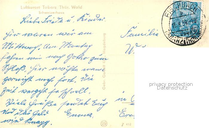73044701 alte Postkarte Tabarz Schweizerhaus postalisch gelaufen Erhaltung siehe scans [WerneD78] KatCode: 11110016067064