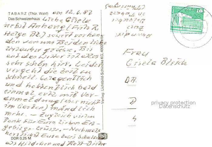 72844622 alte Postkarte Tabarz Schweizerhaus postalisch gelaufen Erhaltung siehe scans [KathaD81] KatCode: 11110016067064