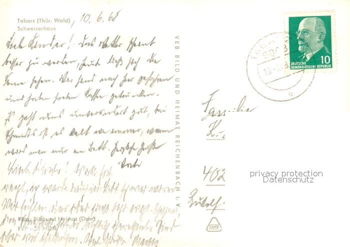 73139452 alte Postkarte Tabarz Schweizerhaus postalisch gelaufen Erhaltung siehe scans [NatalD47] KatCode: 11110016067064