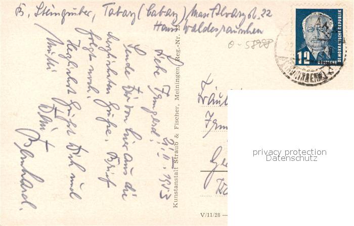 43342845 alte Postkarte Tabarz Spindlerplatz postalisch gelaufen Erhaltung siehe scans [WerneD78] KatCode: 11110016067064