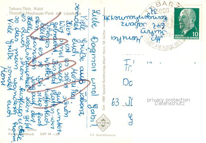 73613968 alte Postkarte Tabarz Theodor Neubauer Park mit Lesehalle postalisch gelaufen Erhaltung siehe scans [FriedD77] KatCode: 11110016067064