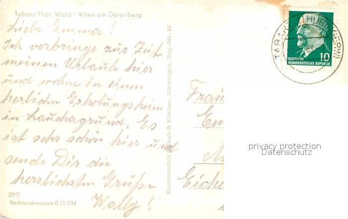 72698607 alte Postkarte Tabarz Ville am Dalenberg Fliegeraufnahme postalisch gelaufen Erhaltung siehe scans [LiesaD40] KatCode: 11110016067064