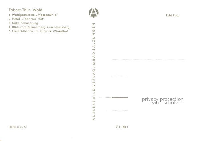 73751008 Tabarz Waldgaststaette Massemuehle Hotel Tabarzer Hof Kickelhahnsprung Inselsberg Freilichtbuehne Kurpark Winkelhof postalisch nicht gelaufen Erhaltung siehe scans [WerneD78] KatCode: 11110016067064