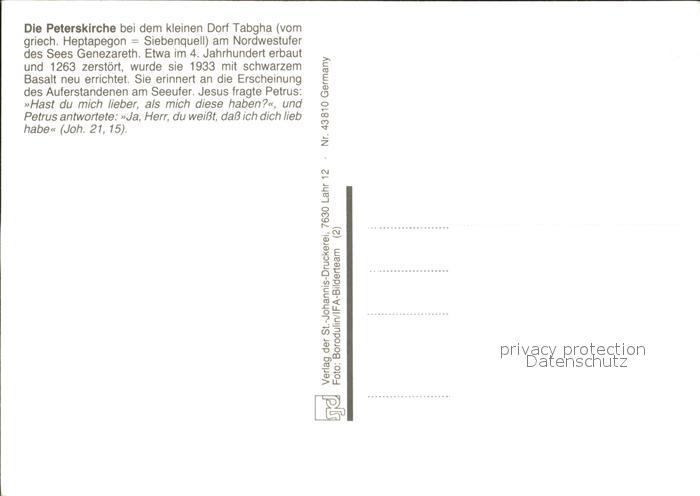 Tabgha Peterskirche postalisch nicht gelaufen Erhaltung siehe scans