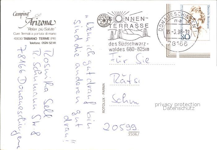 old postcard Tabiano Terme Camping Arizona postalisch gelaufen