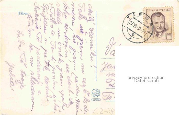 74059382 old postcard Tabor CZ Stadtpanorama Bruecke postalisch gelaufen Erhaltung siehe scans [FriedD77] KatCode: 11520