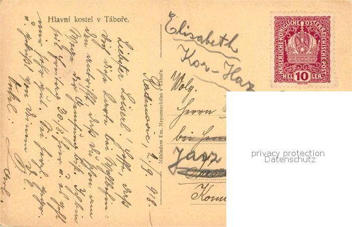 old postcard Tabor Czechia Hlavni kostel v Tabore postalisch gelaufen Erhaltung siehe scans [WerneD78]
