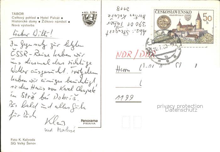 old postcard Tabor Czechia Hotel Palcat Historicke domy Zizkovo namesti postalisch gelaufen Erhaltung siehe scans
