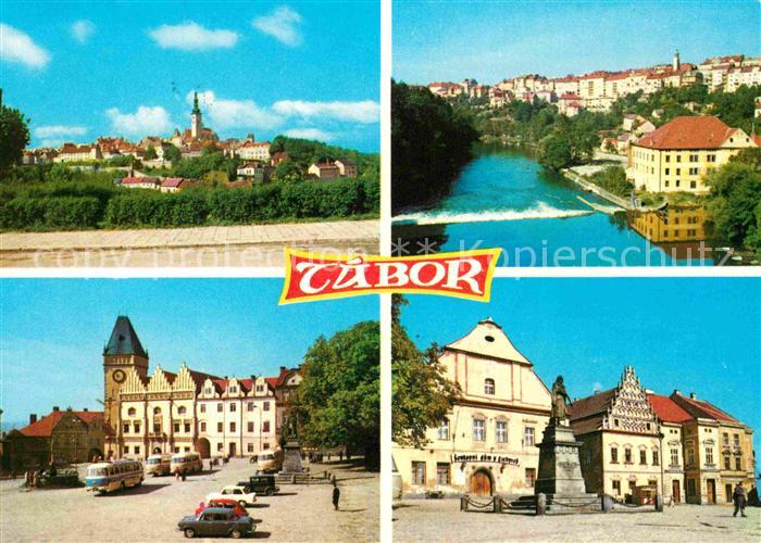old postcard Tabor Czechia Teilansichten Platz Denkmal postalisch gelaufen Erhaltung siehe scans [FriedD77]