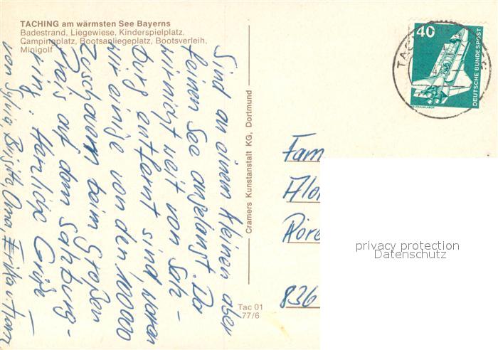 73672856 alte Postkarte Taching See Badestrand Liegewiese Kinderspielplatz Campingplatz Bootsanleger Minigolf postalisch gelaufen Erhaltung siehe scans [WerneD78] KatCode: 11110009189150