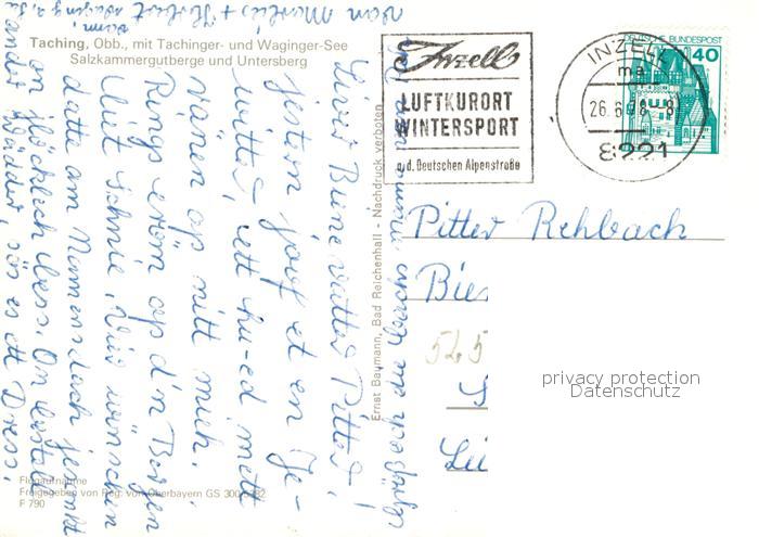 73005443 alte Postkarte Taching See Fliegeraufnahme Tachinger Waginger See Untersberg postalisch gelaufen Erhaltung siehe scans [KathaD81] KatCode: 11110009189150