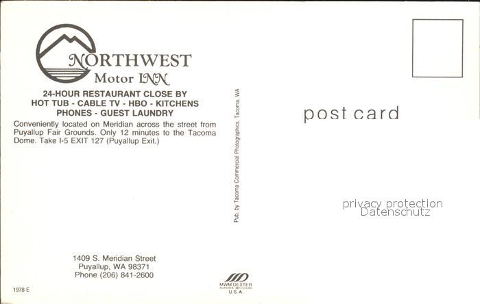 72460160 Tacoma Northwest Motor Inn postalisch nicht gelaufen Erhaltung siehe scans KatCode: 14140500000000
