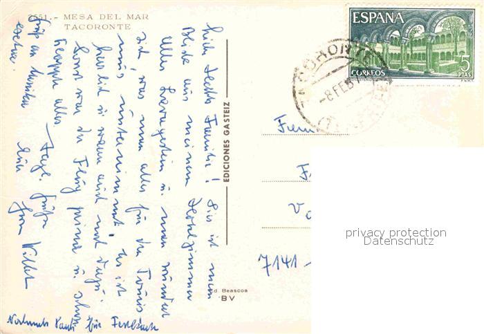 old postcard Tacoronte Mesa del Mar Hotel postalisch gelaufen Erhaltung siehe scans [FriedD77]