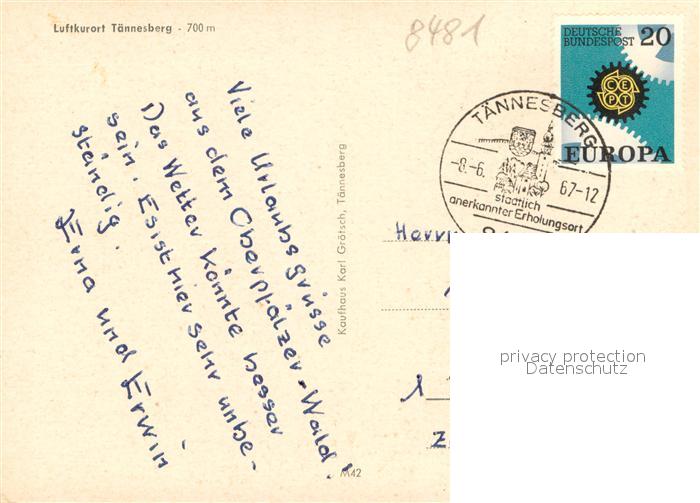 73734965 alte Postkarte Taennesberg Gesamtansicht Luftkurort postalisch gelaufen Erhaltung siehe scans [FriedD77] KatCode: 11110009374159