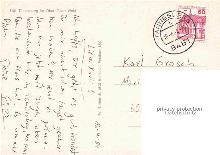 74049384 alte Postkarte Taennesberg Neustadt Waldnaab Bayern Panorama Blick ueber die Felder Gebaeude Musikkapelle Gedenkstein postalisch gelaufen Erhaltung siehe scans [FriedD77] KatCode: 11110009374159