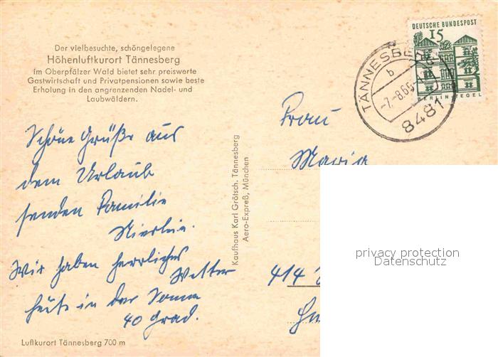 72741058 alte Postkarte Taennesberg Teilansicht Hoehenluftkurort Oberpfaelzer Wald postalisch gelaufen Erhaltung siehe scans [FriedD77] KatCode: 11110009374159