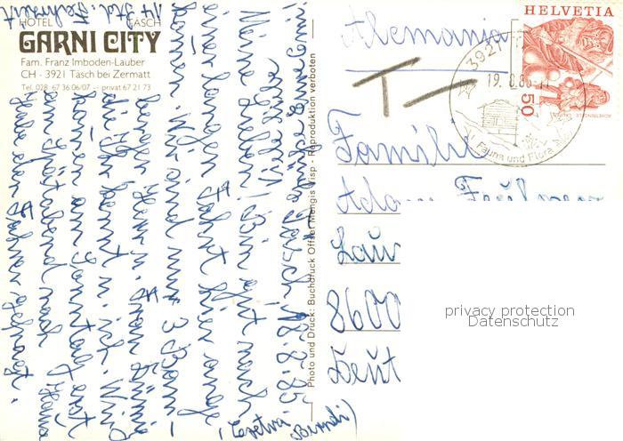 13871015 alte Postkarte Taesch VS Hotel City Garni postalisch gelaufen Erhaltung siehe scans [WerneD78] KatCode: 11470230750760