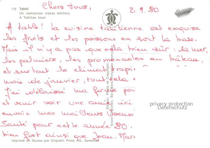 74009707 Tahiti Polynesia Un tamaaraa A Tahitian feast postalisch nicht gelaufen Erhaltung siehe scans [WerneD78] KatCode: 19020
