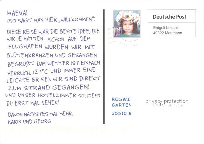 old postcard Tahiti Polynesien Fliegeraufnahme postalisch gelaufen Erhaltung siehe scans